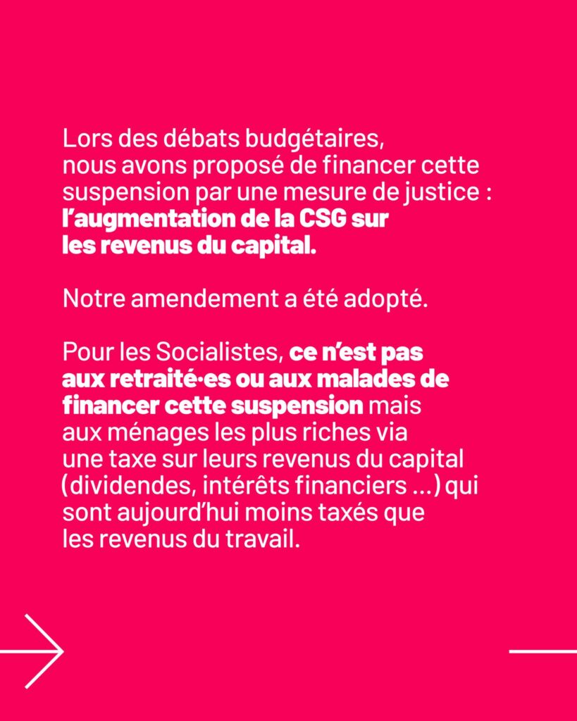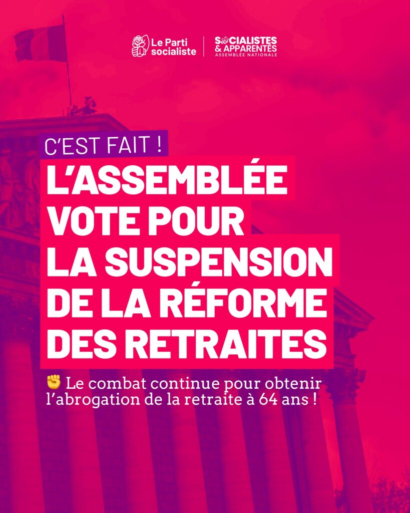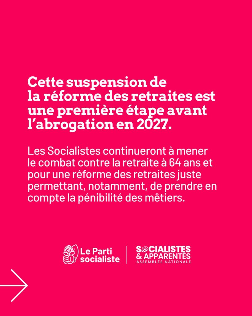 « Le combat continue. En 2027, les Français auront le choix : voter à gauche pour abroger définitivement cette réforme, ou passer la retraite à 67 ans avec la droite d’Édouard Philippe. »