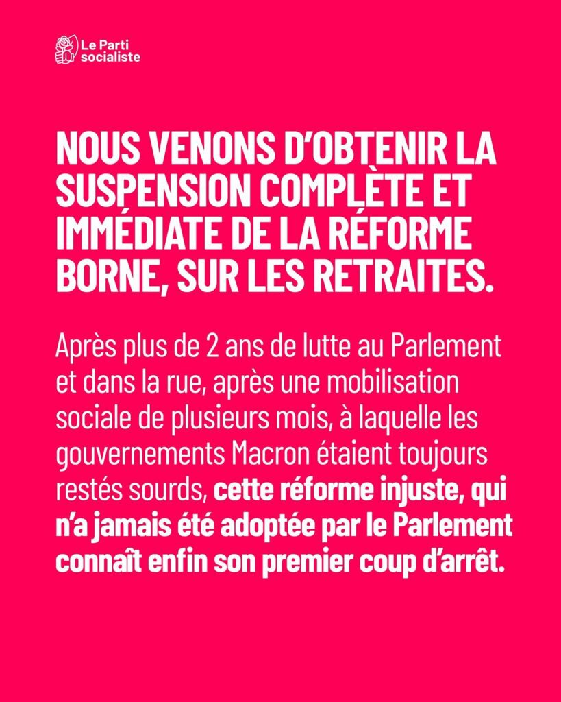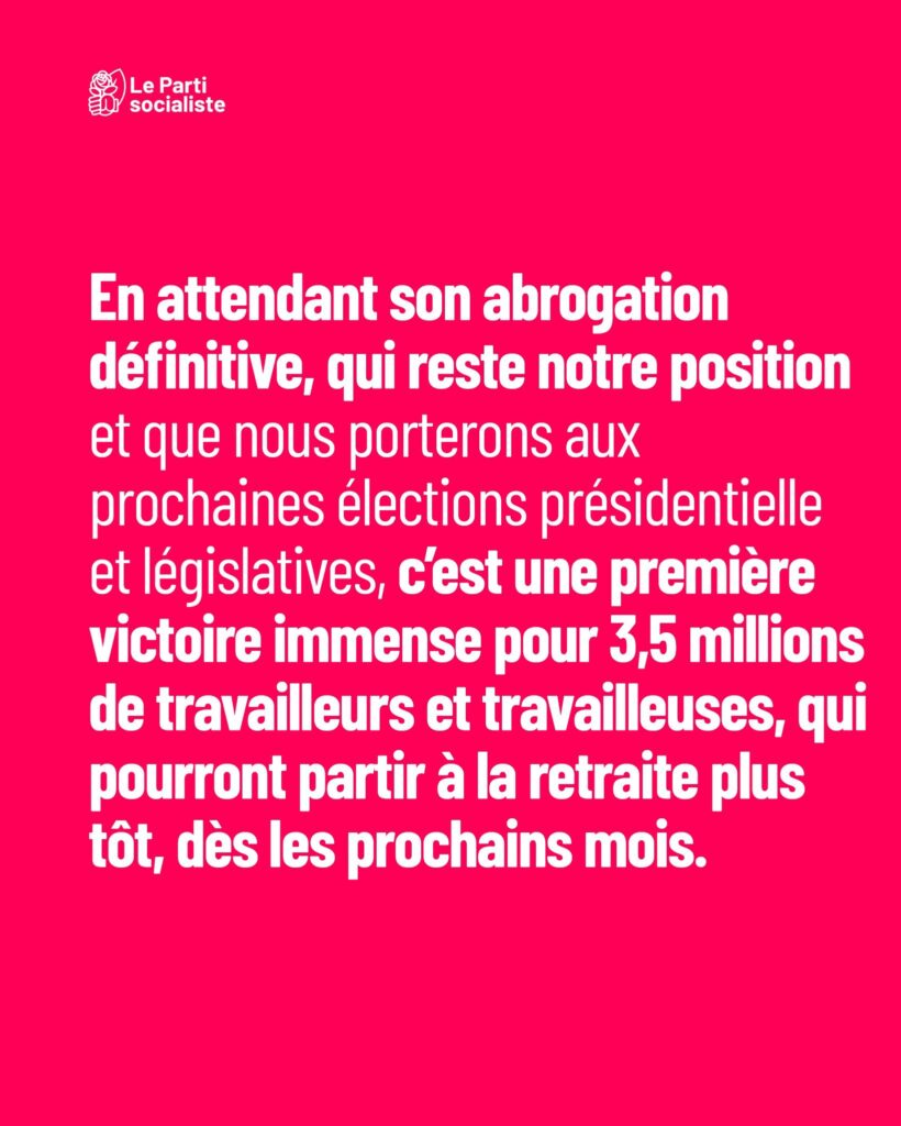 Après plus de 2 ans de mobilisation acharnée contre cette réforme injuste au Parlement comme dans la rue, c’est donc un premier coup d’arrêt majeur obtenu par les socialistes.