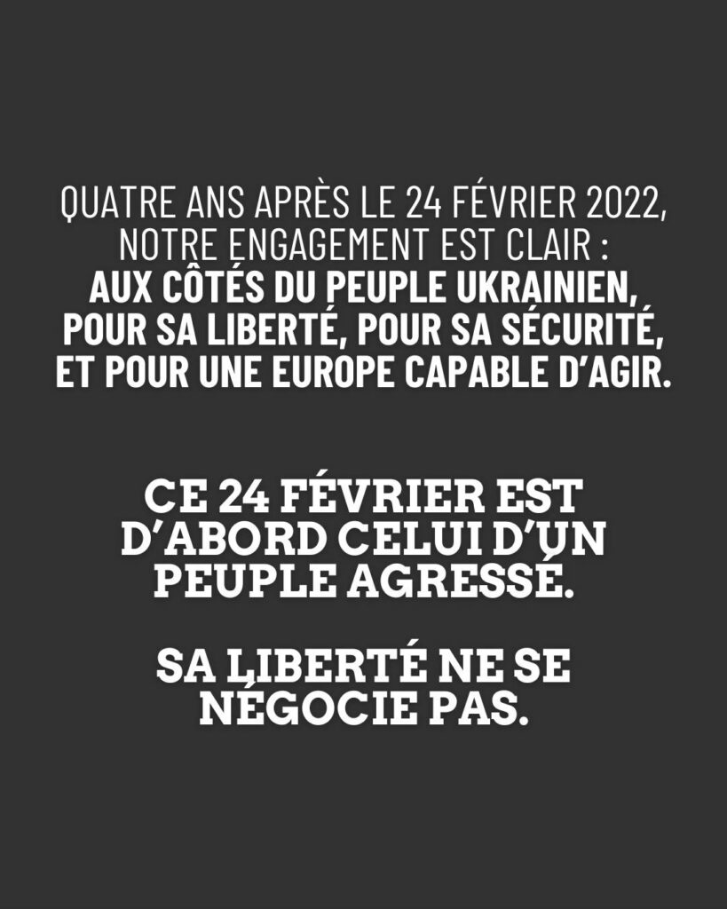 Notre engagement est clair : aux côtés du peuple ukrainien, pour sa liberté, pour sa sécurité, et pour une Europe capable d’agir.