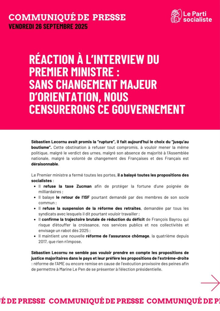 Sébastien Lecornu avait promis la “rupture”, il fait aujourd’hui le choix du “jusqu’au boutisme”. Cette obstination à refuser tout compromis, à vouloir mener la même politique, malgré le verdict des urnes, malgré son absence de majorité à l’Assemblée nationale, malgré la volonté de changement des Françaises et des Français est déraisonnable.