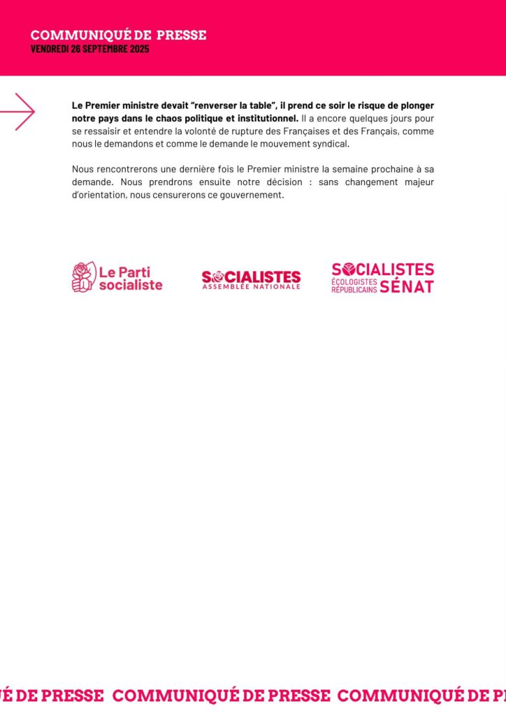 Le Premier ministre devait “renverser la table”, il prend ce soir le risque de plonger notre pays dans le chaos politique et institutionnel. Il a encore quelques jours pour se ressaisir et entendre la volonté de rupture des Françaises et des Français, comme nous le demandons et comme le demande le mouvement syndical.