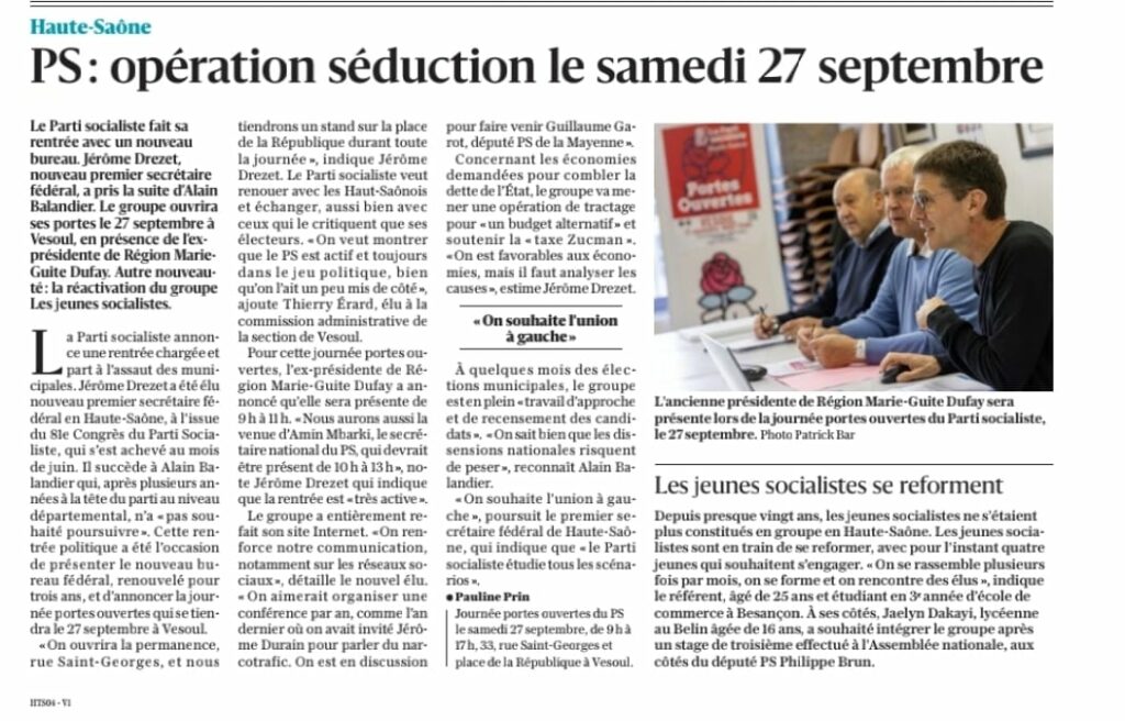 Echanges autour du contre-budget présenté par le Parti socialiste, sur les enjeux cruciaux de lutte contre les inégalités, contre la pauvreté ou contre l’affaiblissement de nos biens communs, sur les prochaines municipales particulièrement en Haute-Saône, etc.